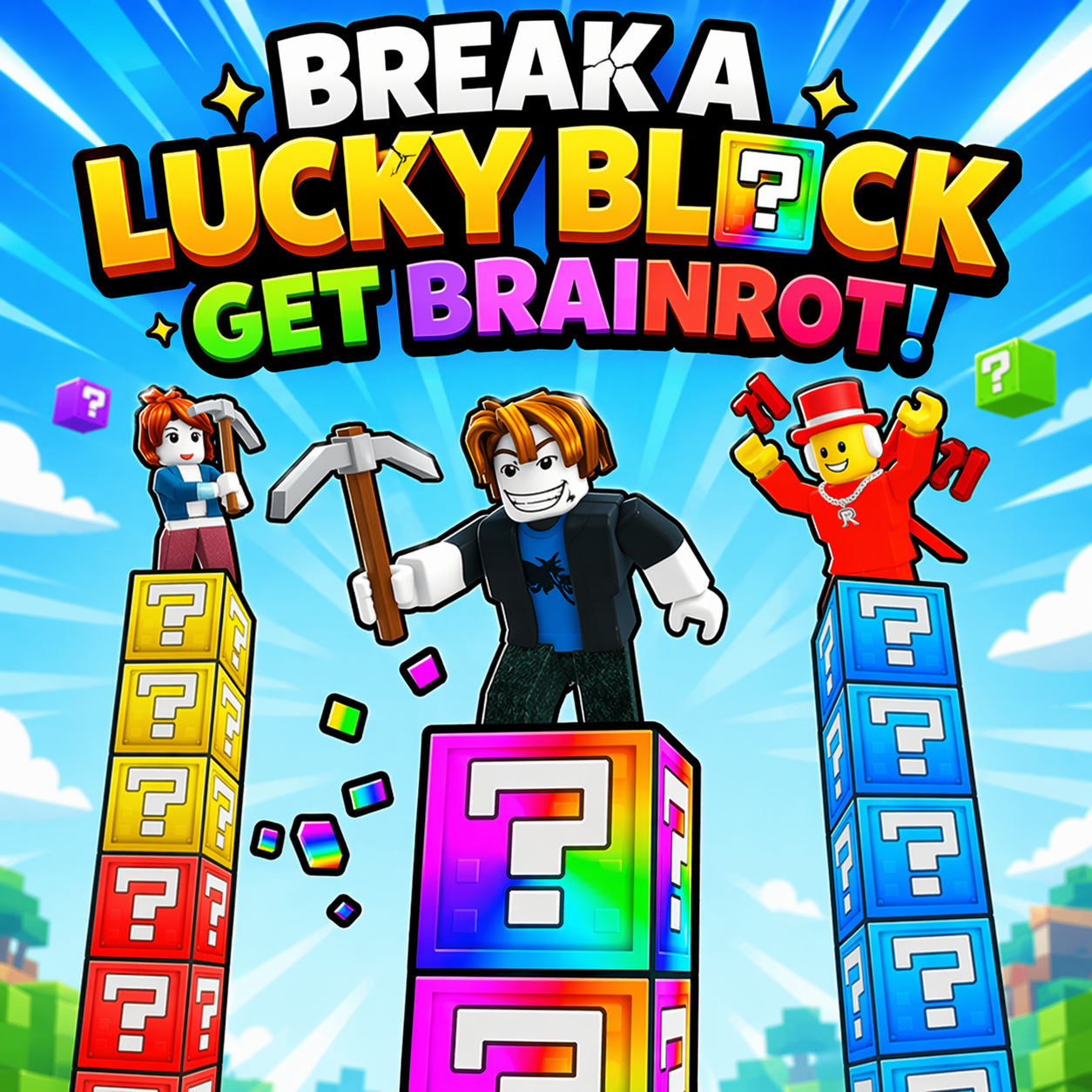 Break a Lucky Block - Get Brainrot! mixes strategy and physics into a chaotic battlefield where every lucky block can change your entire team. Players break blocks to summon different units, each with unique power, then place them into battle formations to face incoming enemies. Winning depends on smart tactics, timing upgrades, and choosing the right combination of fighters. As battles progress, enemies become stronger, forcing you to constantly adapt and evolve your strategy to survive.
